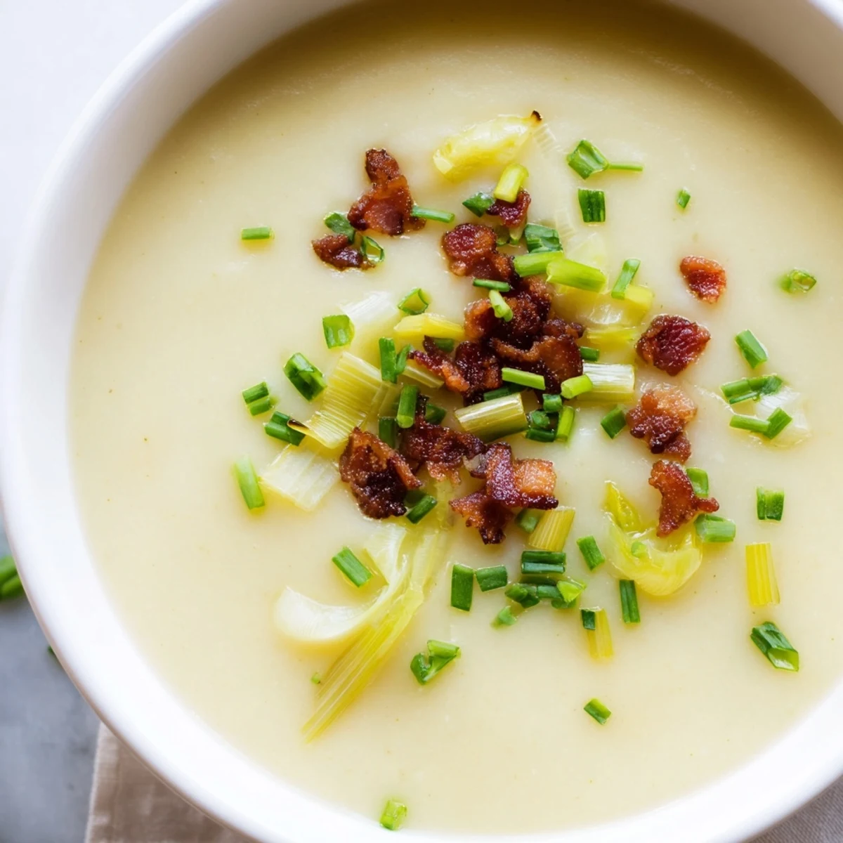 This comforting soup combines tender Yukon Gold potatoes and sweet leeks slowly cooked with savory turkey bacon. Butter and garlic create a flavorful base, enhanced by a splash of heavy cream for smooth richness. Simmered to tender perfection and finished with fresh chives and crispy bacon bits, it offers a warm and velvety experience ideal for chilly days. Easily adapted with vegetable broth or garnishes like Parmesan or olive oil.