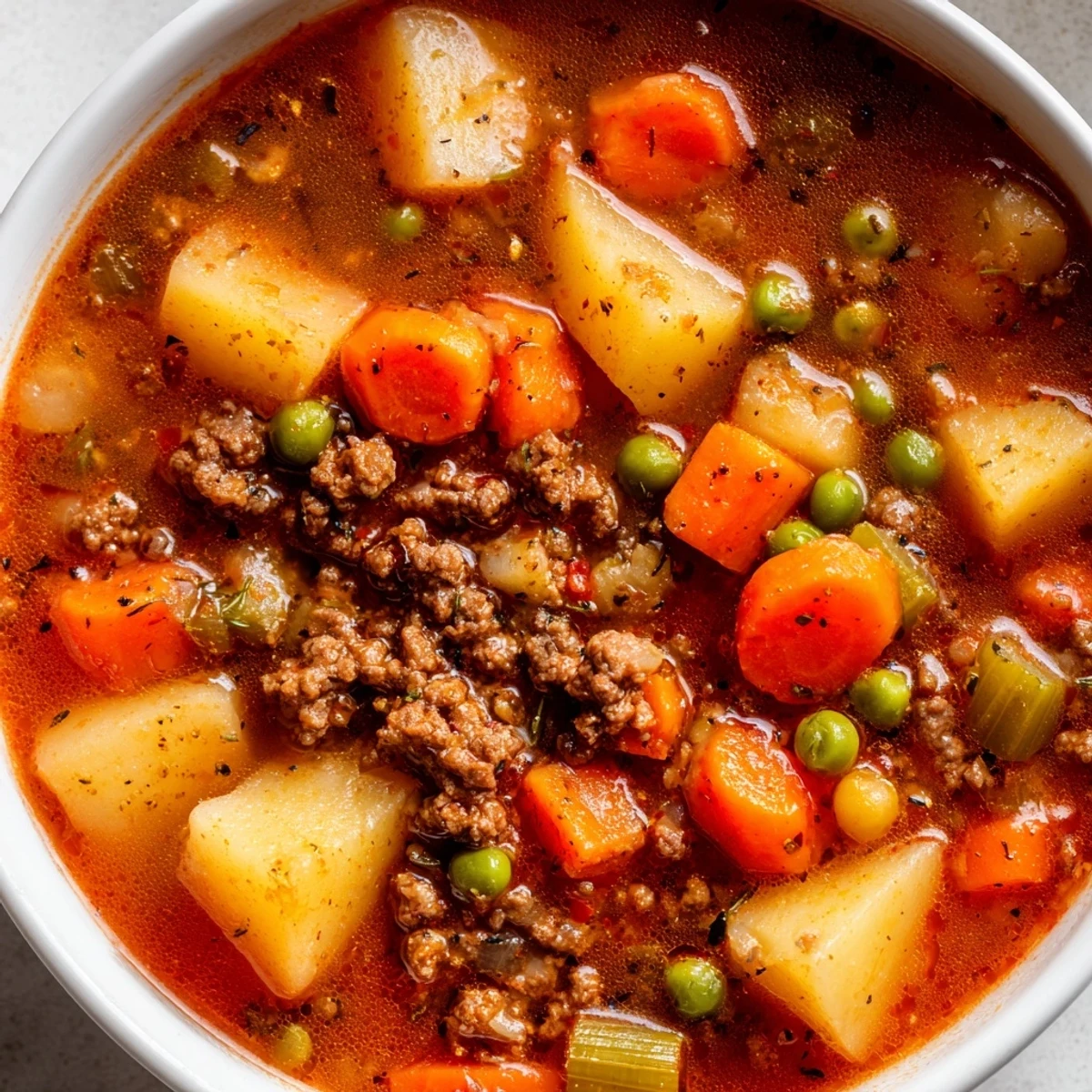 The weather had turned brutally cold last February, the kind that makes you want to wrap yourself in a blanket and refuse to leave the house. My husband had been stuck late at work, and I found myself staring at a package of ground beef in the fridge, wondering what to make. This soup came together from whatever vegetables I had on hand, and the smell of it simmering made the whole house feel warmer somehow.