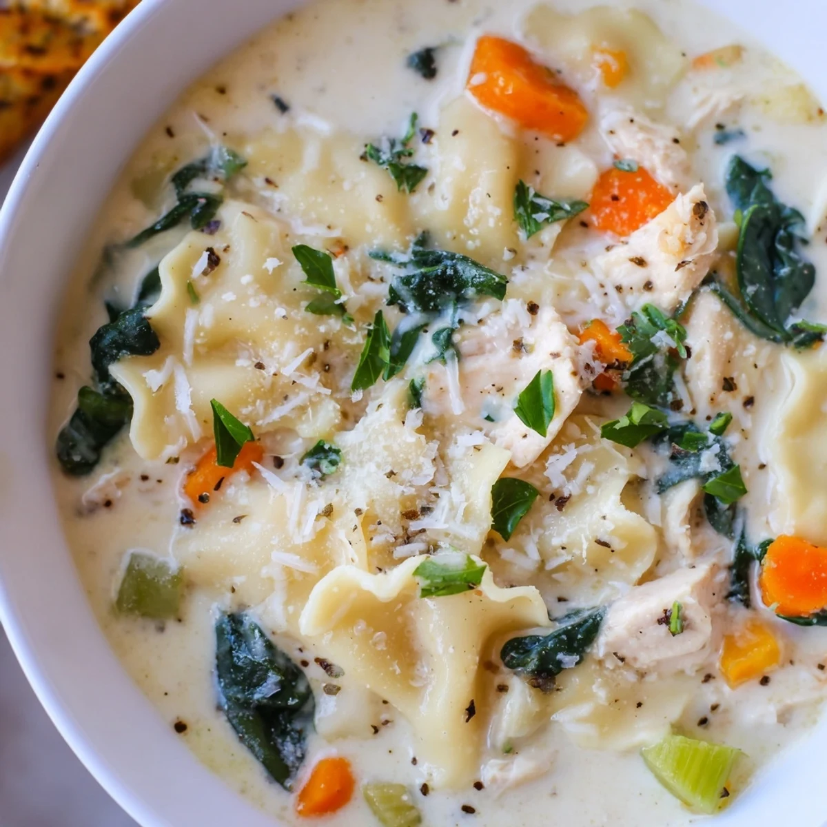 This hearty Italian soup captures all the comforting flavors of white lasagna in bowl form. Tender chicken simmers with aromatic vegetables and broken lasagna noodles in a savory chicken broth infused with Italian herbs. The finished dish gets swirled with heavy cream and loaded with ricotta, mozzarella, and Parmesan for an ultra-creamy texture. Fresh spinach adds color and nutrients, while a sprinkle of red pepper flakes provides optional warmth. Perfect for cold weather meals, this soup delivers restaurant-quality Italian comfort food in under an hour.