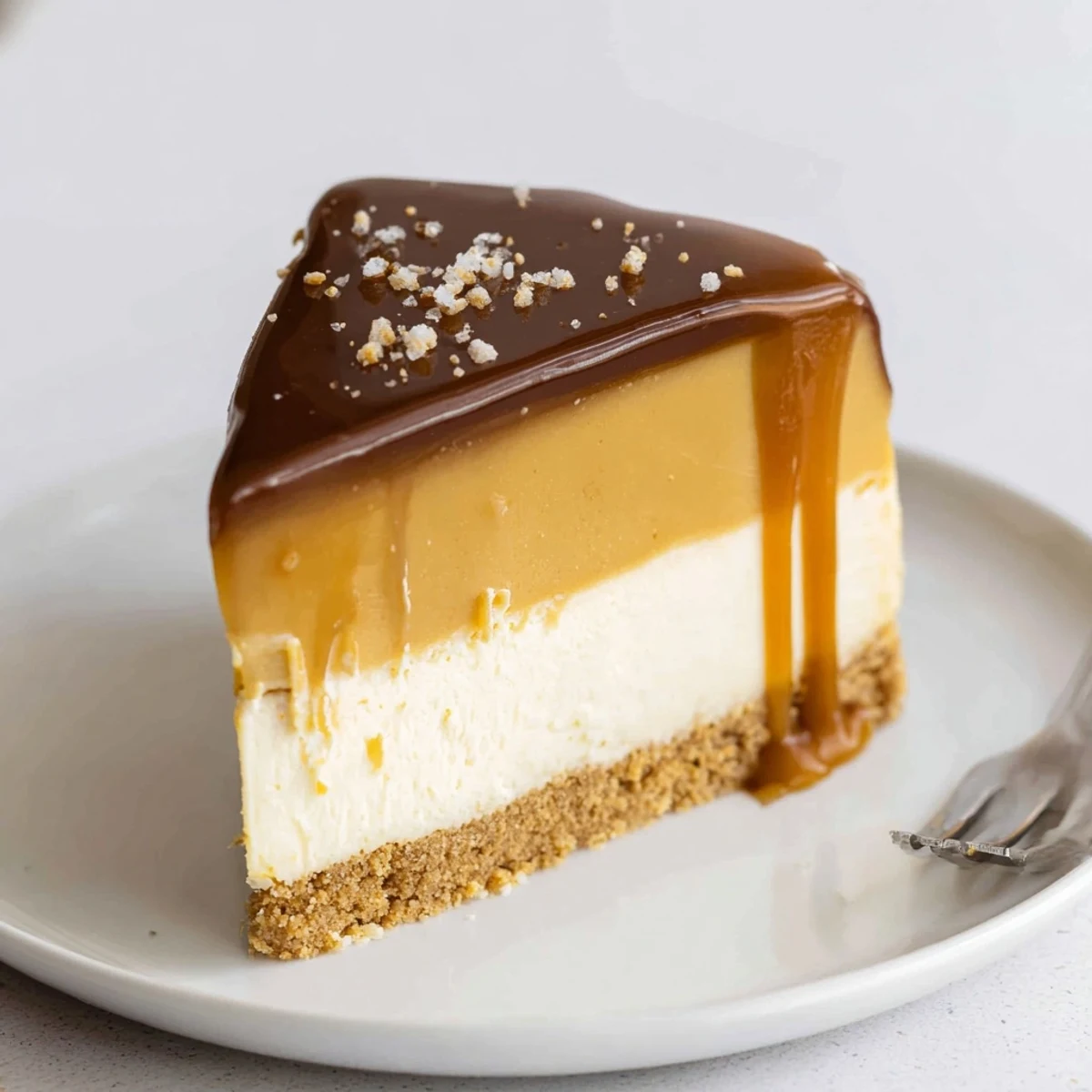 Yes — a light sprinkle of flaky sea salt (such as Maldon) over the ganache enhances the caramel and dark chocolate flavors, adding a pleasant contrast.
