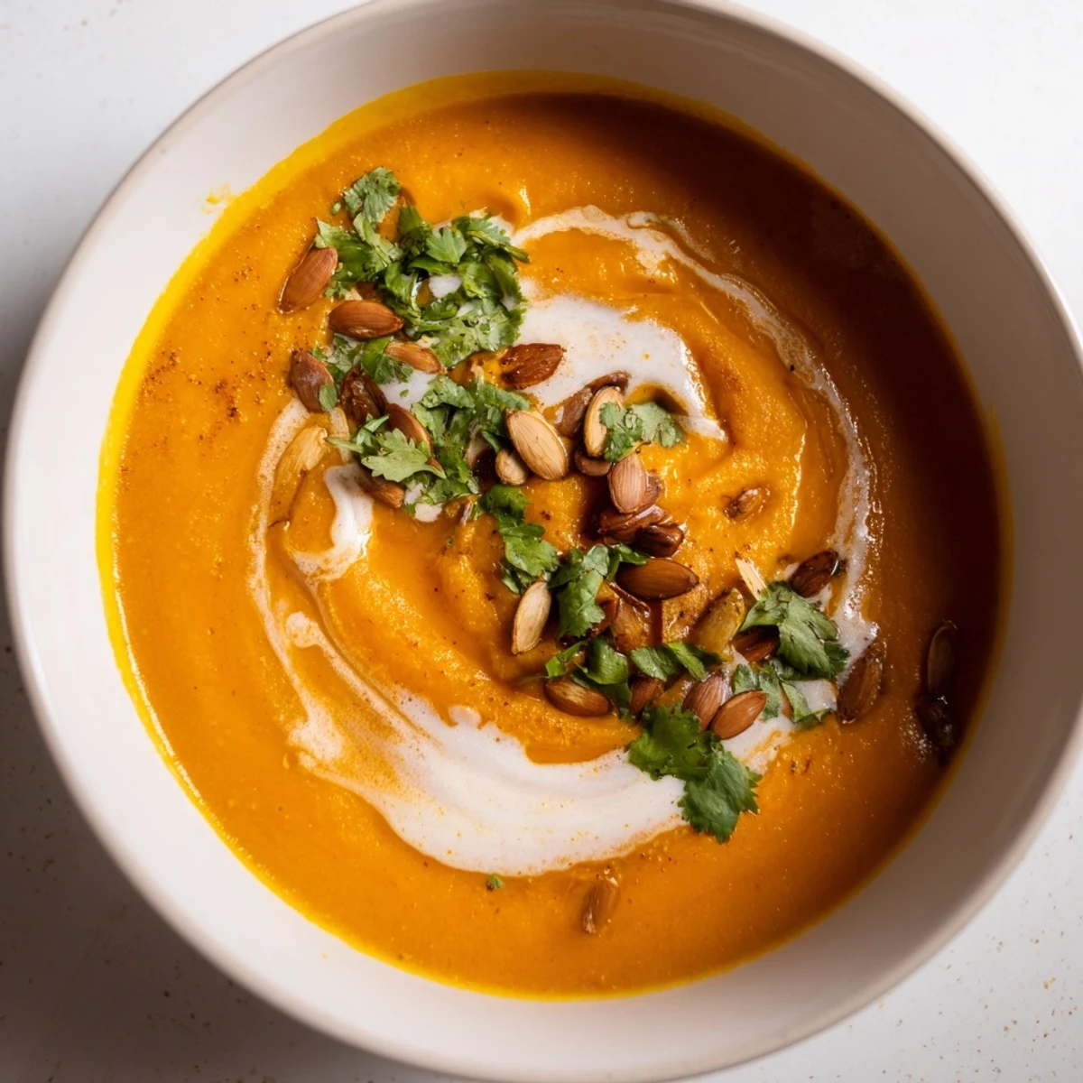 This velvety carrot dish combines sweet, tender carrots with a warming mix of cumin, coriander, ginger, cinnamon, and optional chili heat. Sautéed onion and garlic develop rich aromas before simmering with potatoes in a savory vegetable broth. The final silky texture comes from pureeing and optional addition of coconut milk or cream, creating a harmonious balance of spice and sweetness. Garnish with fresh herbs and seeds to add texture and freshness, perfect for a cozy meal or elegant start.