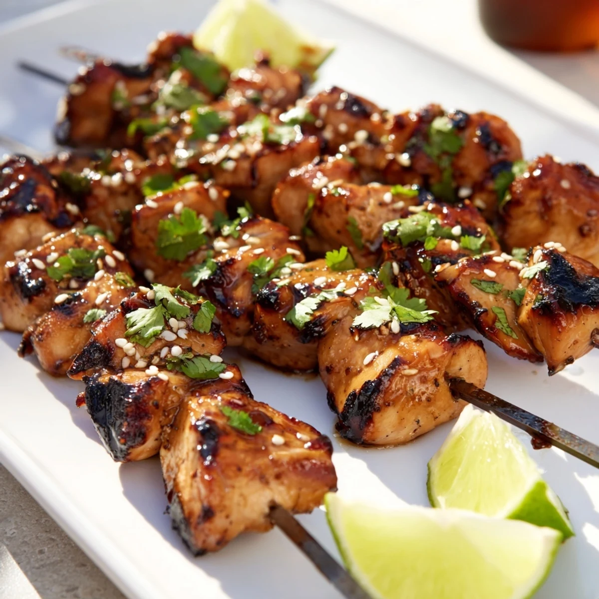 These tender chicken pieces soak up a vibrant marinade combining honey's natural sweetness, aromatic garlic, and spicy chili heat. After marinating for at least an hour, the skewers hit the grill, developing a beautifully charred exterior while staying moist inside. The basting technique during grilling builds layers of flavor, creating that perfect balance between sweet and spicy. Finished with fresh herbs and a squeeze of lime, each bite offers smoky, tangy, and savory notes that make this dish ideal for outdoor gatherings or weeknight dinners alike.