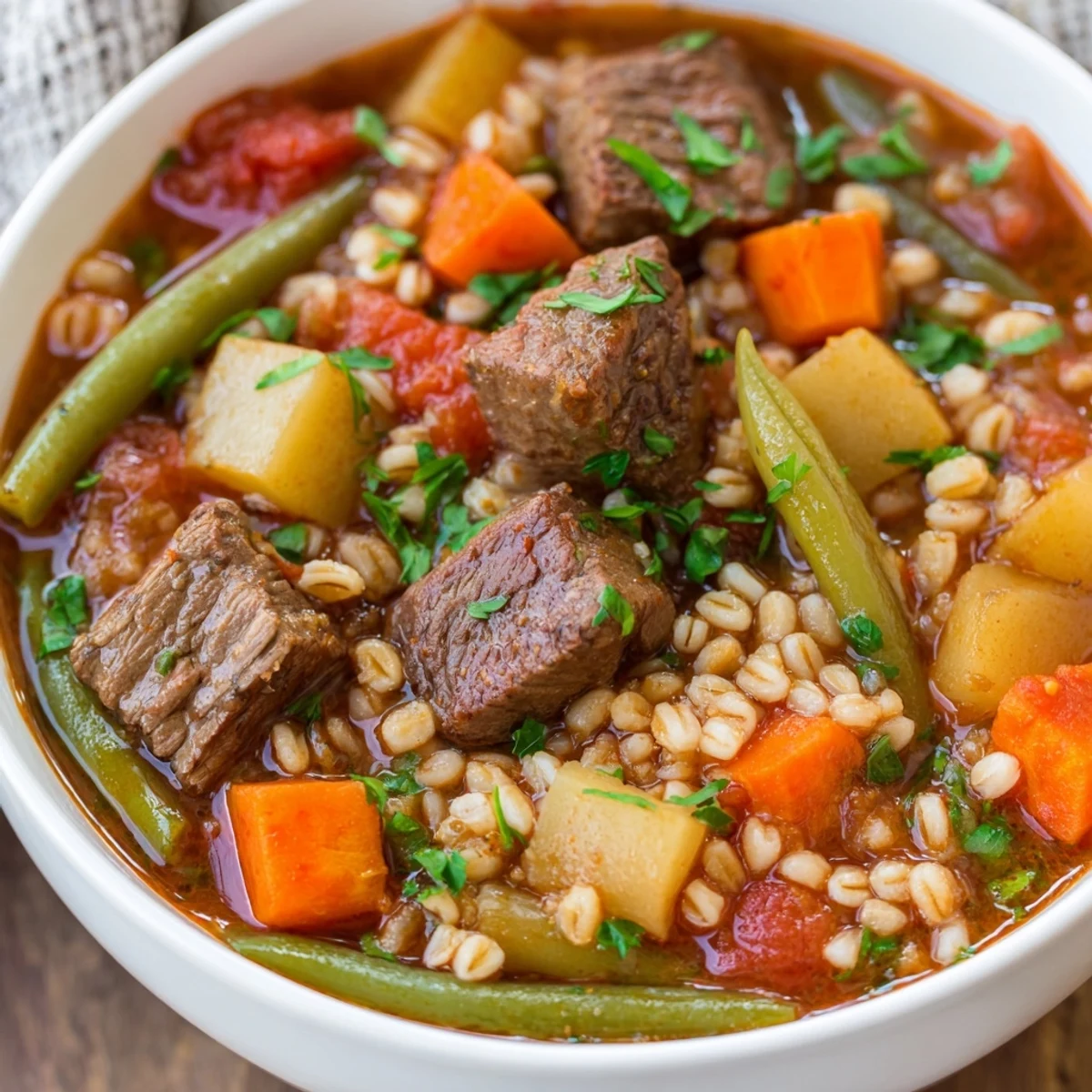 - Pearl barley (3/4 cup, rinsed): Rinsing keeps it from turning gummy, and it adds a nutty chew that makes the stew feel hearty without being heavy.